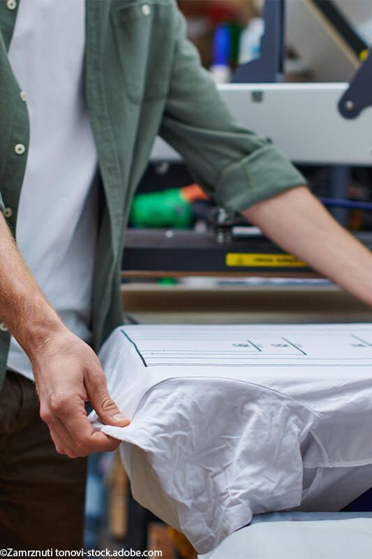 - Nylon- und beschichtete Textilien eignen sich nicht für dieses Druckverfahren